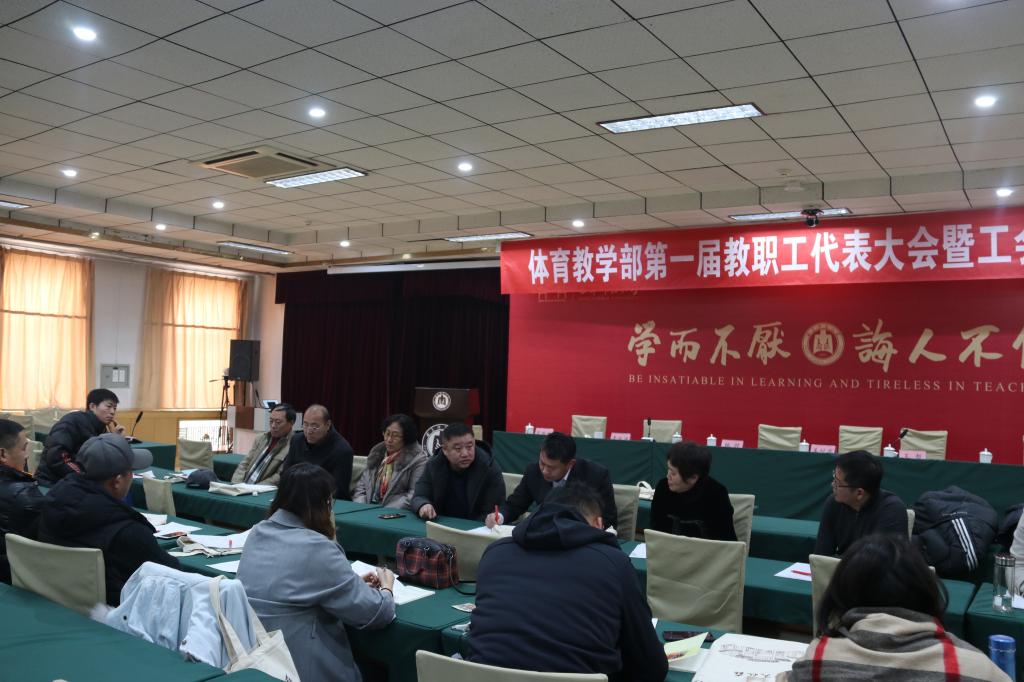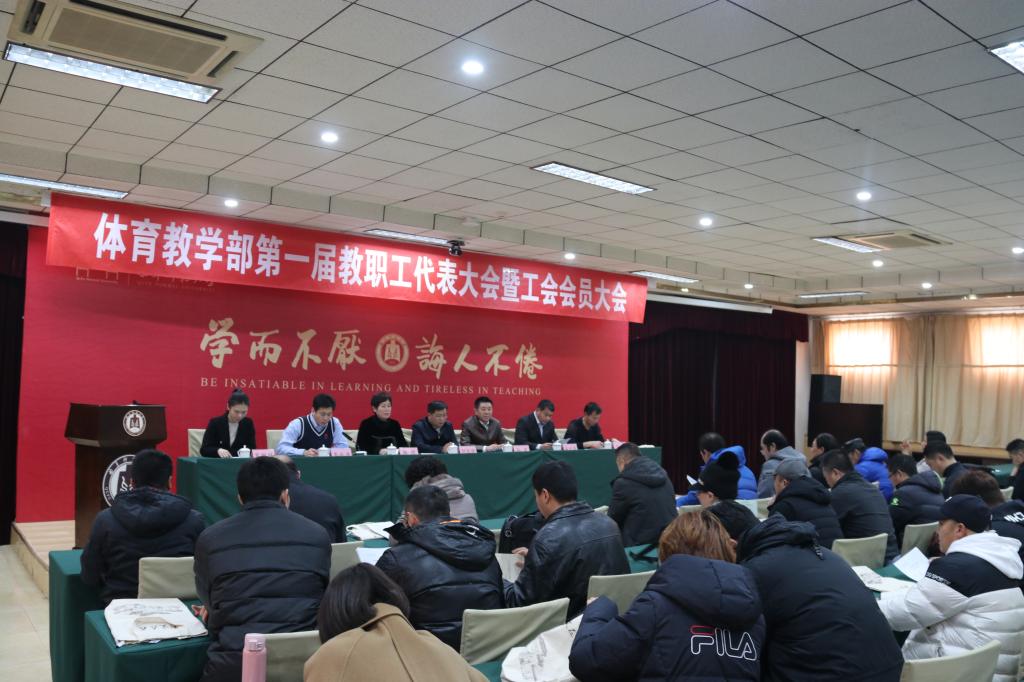 1月3日,为了充分调动广大教职工参与民主管理和监督的积极性,体育教学部两校区教职工齐聚一堂,召开了大发平台体育教学部第一届教职工代表大会暨工会会员代表大会。党委常委、副校长胡钦晓教授出席大会,校工会副主席孙岩,体育教学部主任杨弢教授、体育教学部副主任姜付高教授、体育教学部副主任李兆进副教授、体育教学部日照校区工会主席王哲和体育教学部曲阜校区工会主席宋琳琳等相关领导以及39名教职工和工会会员代表参加了会议。