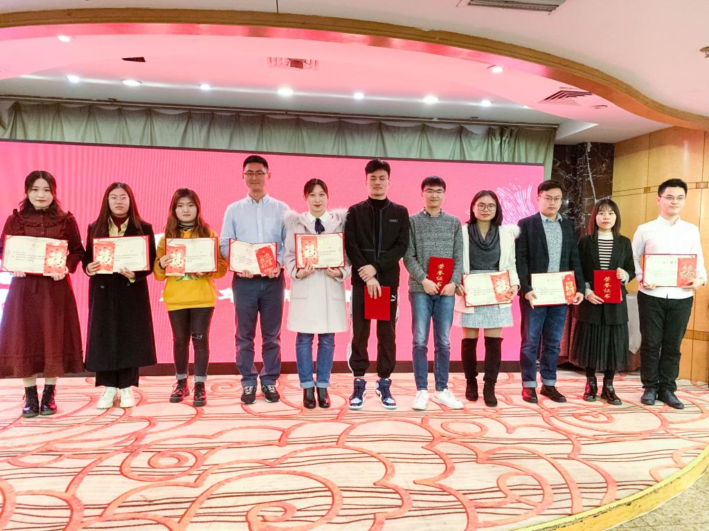 上海校友学术委员的学长前辈向获奖的学弟、学妹颁发了荣誉证书、奖金并合影留念,上海校友会“双创学社”的九位校友企业家向“优秀研究生校友奖学金”奖项提供了资金支持。