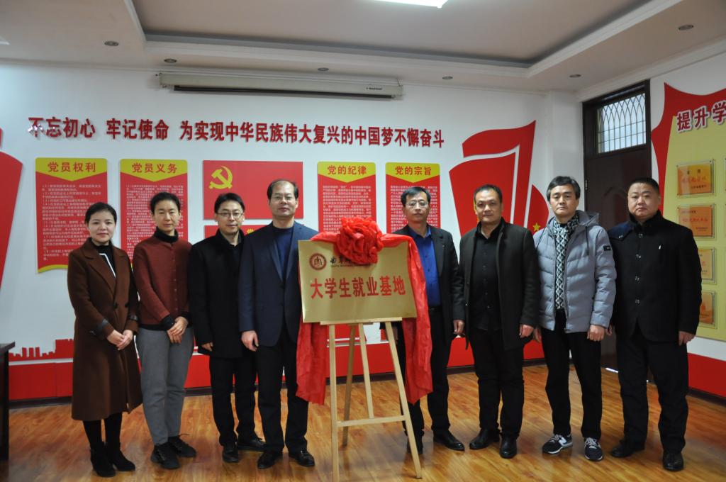 仪式上,杨东、王兴民共同为“大发平台大学生就业基地”揭牌。