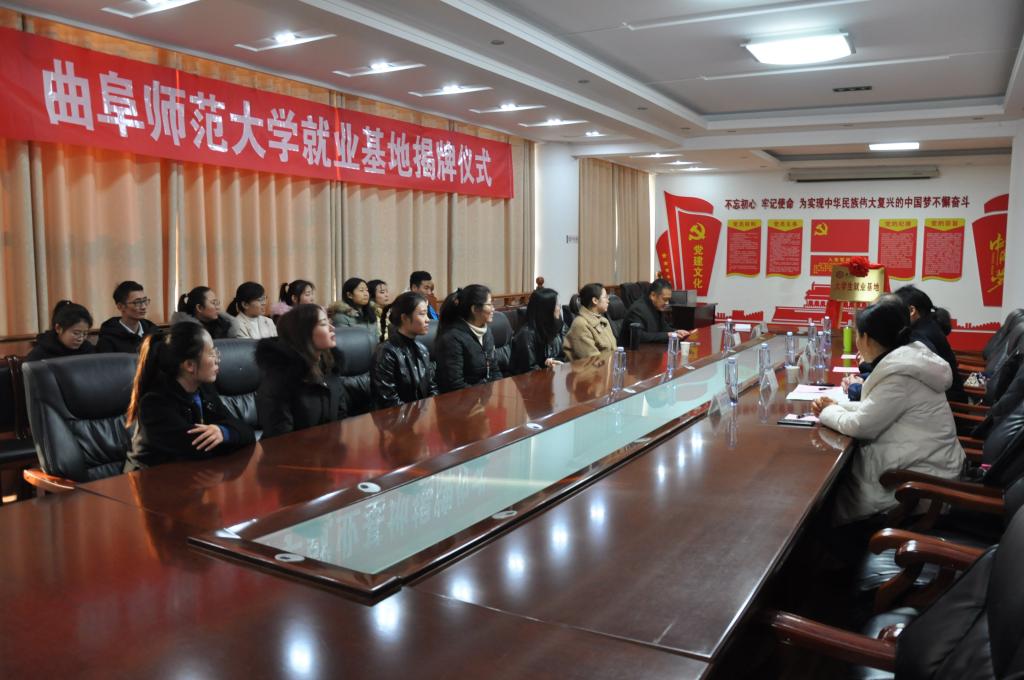 12月12日上午,我校“大学生就业基地”在滕州实验高级中学揭牌。学生工作处副处长杨东、数学科学学院党委副书记曲凤东、文学院党委副书记曲媛媛、就业指导中心负责同志,滕州高级实验中学校长王兴民、党支部书记王启然、党支部副书记李永、高中部校长罗元、学校办公室工作同志,出席了揭牌仪式。