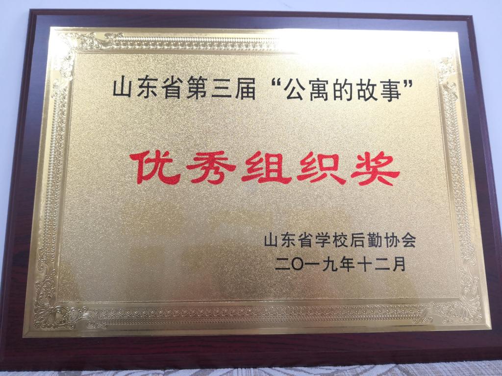 12月8日,2019年全省公寓文化建设研讨培训班暨第三届“公寓的故事”颁奖大会和文艺展演在山东东营职业学院举行。我校公寓管理中心报送的三项作品获奖,我校荣获“优秀组织奖”。