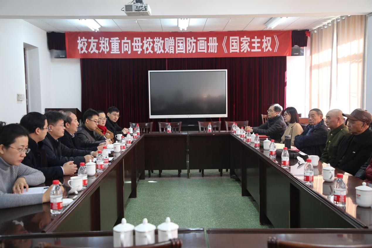 12月4日上午,我校优秀校友、《国家主权》主编郑重先生率陈志军等两位编委向学校(党委)办公室、图书馆、档案馆以及数学科学学院等单位捐赠大型国防教育画册《国家主权》。学校相关部门负责人接受了捐赠。