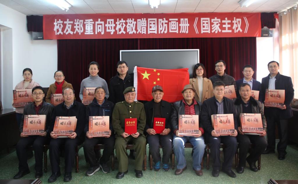 捐赠仪式上,郑重老先生动情地回忆了自己在母校度过的难忘青春时光,深情回忆了自己的军旅生涯,阐述了自己编撰《国家主权》的初心,他希望更多的国人能够熟悉历史、铭记历史,铭记在中华民族100多年的反侵略、反压迫、争取民族独立的斗争中无私奉献、流血牺牲的英雄前辈,珍惜当下的和平盛世,矢志为中华民族的复兴努力奋斗。