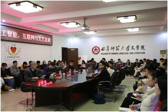 11月9日晚,中国社会科学院研究员、博士生导师刘方喜应邀为我校文学院师生作了题为“人工智能、互联网与文艺的未来”的学术讲座。讲座由文学院文化创意与文化产业研究中心副主任霍俊国主持,文学院部分老师和全体研究生参加了讲座。