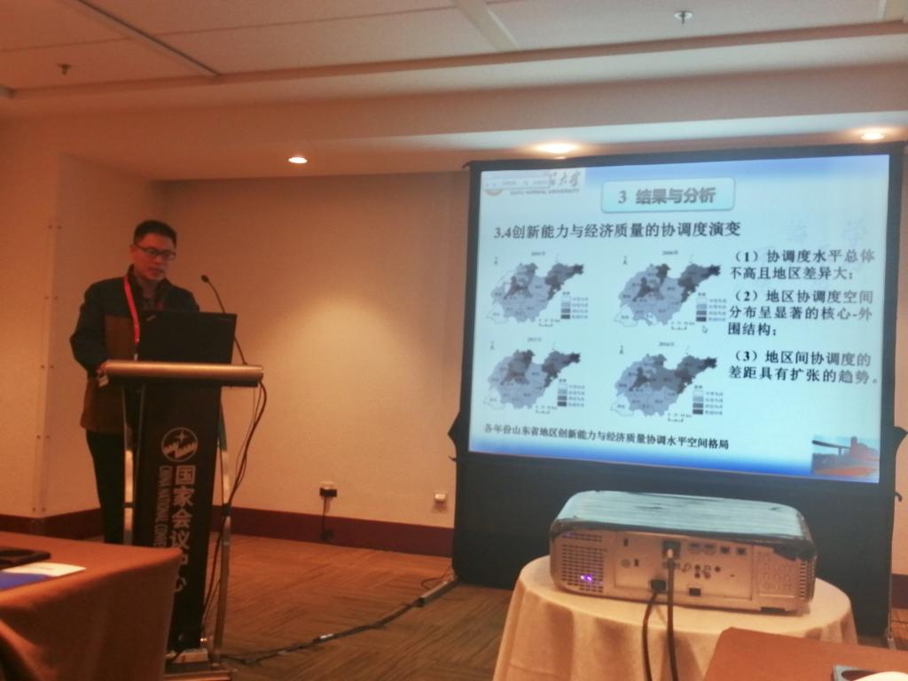 大会期间,张全景院长在“地理学实践教学的建设与优化”分会场作了题为《地理科学专业“合格+特长” 实践教学模式的构建——基于大发平台的实践》的报告并进行交流,赵林副教授在“经济地理学的理论与方法创新”分会场作了题为《中国包容性绿色效率的综合测度与时空格局》的学术报告并进行交流,张学波副教授在“黄河流域人地系统耦合与生态经济带建设”分会场作了题为《山东省创新能力与经济质量的耦合协调演变分析》的学术报告并进行交流,郭付友老师在“气候变化适应、 社会-生态系统恢复力与地理学思维”分会场作了题为《鲁南经济带城乡绿色发展效率时空分异及驱动因素识别》的学术报告并进行交流,刘庆果老师在“长江中游地区地理过程监测与人类活动协同研究”分会场作了题为《长江经济带设施农用地时空格局演变及驱动因素》的学术报告并进行交流,硕士研究生申端帅在“乡村振兴与农业和乡村地理学”分会场展示交流了题为《农村集体经营性建设用地入市对乡村转型发展的影响机理研究——以山东省禹城市为例》的学术成果。此外,张全景院长受邀作为“地理学实践教学的建设与优化”分会场的点评人对相关报告进行了点评。
