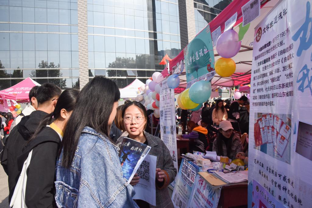 由共青团大发平台委员会主办、学生社团联合会(社团管理部)承办的“百团大战”于10月27日和10月19日分别在曲阜校区大学生活动中心广场与日照校区日月广场正式拉开帷幕。学校党委副书记扈庆学视察“百团大战”开展情况,日照校区管理办公室主任孔令军、学生工作处处长姜美颖、校团委书记宋国栋、副书记刘蓉等陪同视察。