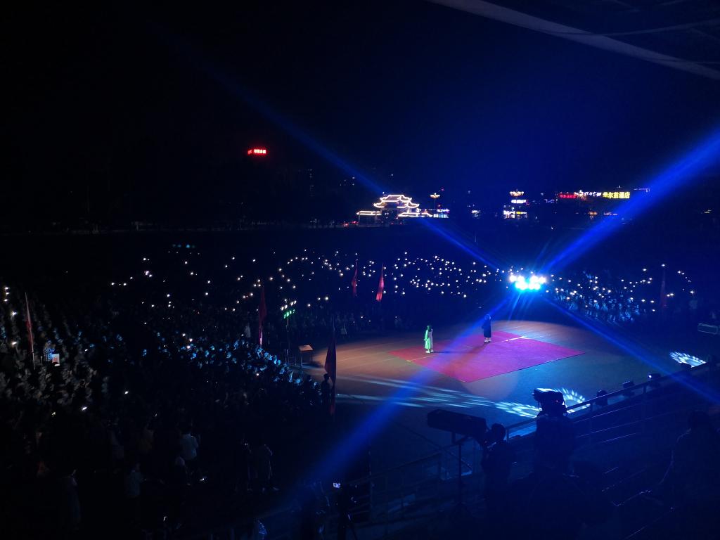9月18日晚,在两校区操场,分别开展了红歌汇演活动。各学院组成合唱方队,同学们身着军装,慷慨激昂,声音响彻云霄。为了更充分地展示同学们的爱国热情和各学院风采,各学院还设计了挥舞红旗、肢体表演、配乐朗诵等形式,精彩绝伦。学院红歌展演期间,大学生艺术团等还穿插表演了精彩的节目。现场聚光灯、手指灯、手机电筒灯交相闪烁,掌声、歌声不绝于耳,夜幕下的操场变成了同学们以独特形式表达爱国情感和集体主义情怀的大舞台。