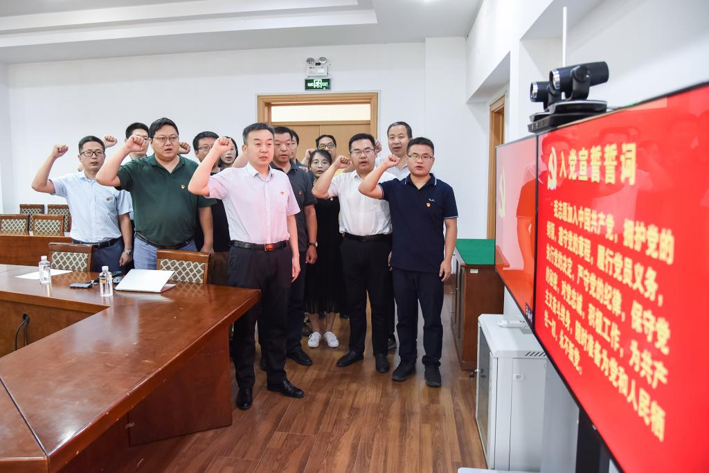 重温入党誓词,牢记初心使命。集中理论学习最后,网络信息中心主任徐新农带领全体党员重温了入党誓词。铿锵有力的誓词提醒每位党员不忘我们党“为中国人民谋幸福,为中华民族谋复兴”的初心和使命,时刻牢记党员身份,充分发挥党员的先锋模范作用,为我们党的教育事业贡献自己的力量,为学校的发展勇于担当。