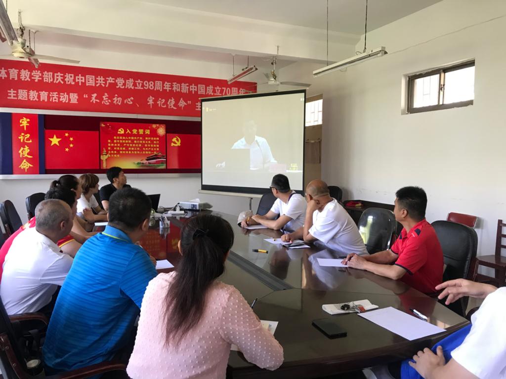 随后,全体党员回到会议室开展了“不忘初心、牢记使命”主题教育活动,集体观看了《中国共产党党员教育工作条例》。李兆进书记指出,严格要求党员老师以身为范,勇于担当,甘于奉献,始终坚持正确方向,站得住讲台,做得好科研,守得住师德。我们应增强“四个意识”,坚定“四个自信”,做到“两个维护”,围绕初心使命,找差距、抓落实,边学边查边改。活动交流中,各位同志结合个人成长经历、联系自身工作职责进行了深入思考,既回望走过的路,又眺望前行的路,既查找差距和不足,又汲取信心和智慧,以教育工作的实际成效,践行共产党人的初心。