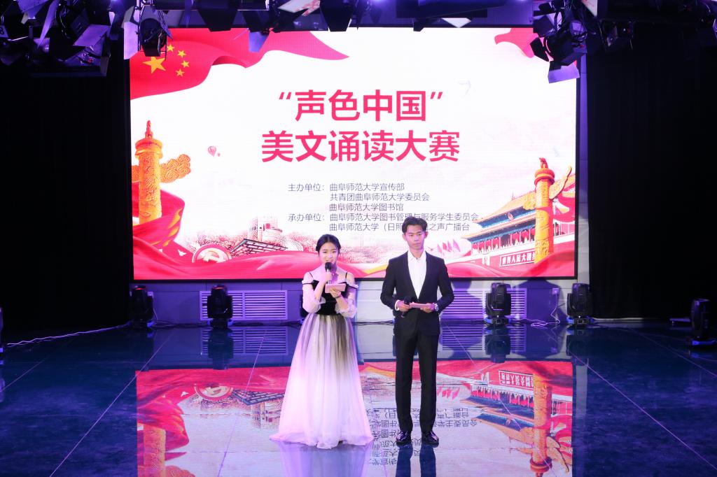 “我们读中国,用祖先钻木的火种,照亮华夏文明,生生不息的长河,我们读中国,沿着甲骨文沧桑的纹理,驾驭历史的长车,纵横阡陌……”“声色中国”美文诵读大赛在恢弘大气的师生合诵《读中国》中拉开序幕。历经初赛的层层选拔,来自传媒学院、经济学院、工学院等7个学院的19组选手进入复赛。
