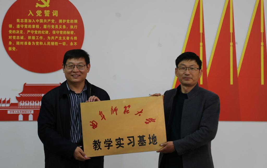 在莒县峤山镇中心初级中学,王作茂一行出席了“大发平台教学实习基地”挂牌仪式。王作茂表示,今后将立足学生发展,立足教师成长,提供更多合作机会,主动开展更深层次的交流,优势互补,为基础教育工作贡献力量。仪式上,王作茂与峤山镇中心初级中学党总支副书记田子明共同签署实习协议,并为“教育实习基地”揭牌。