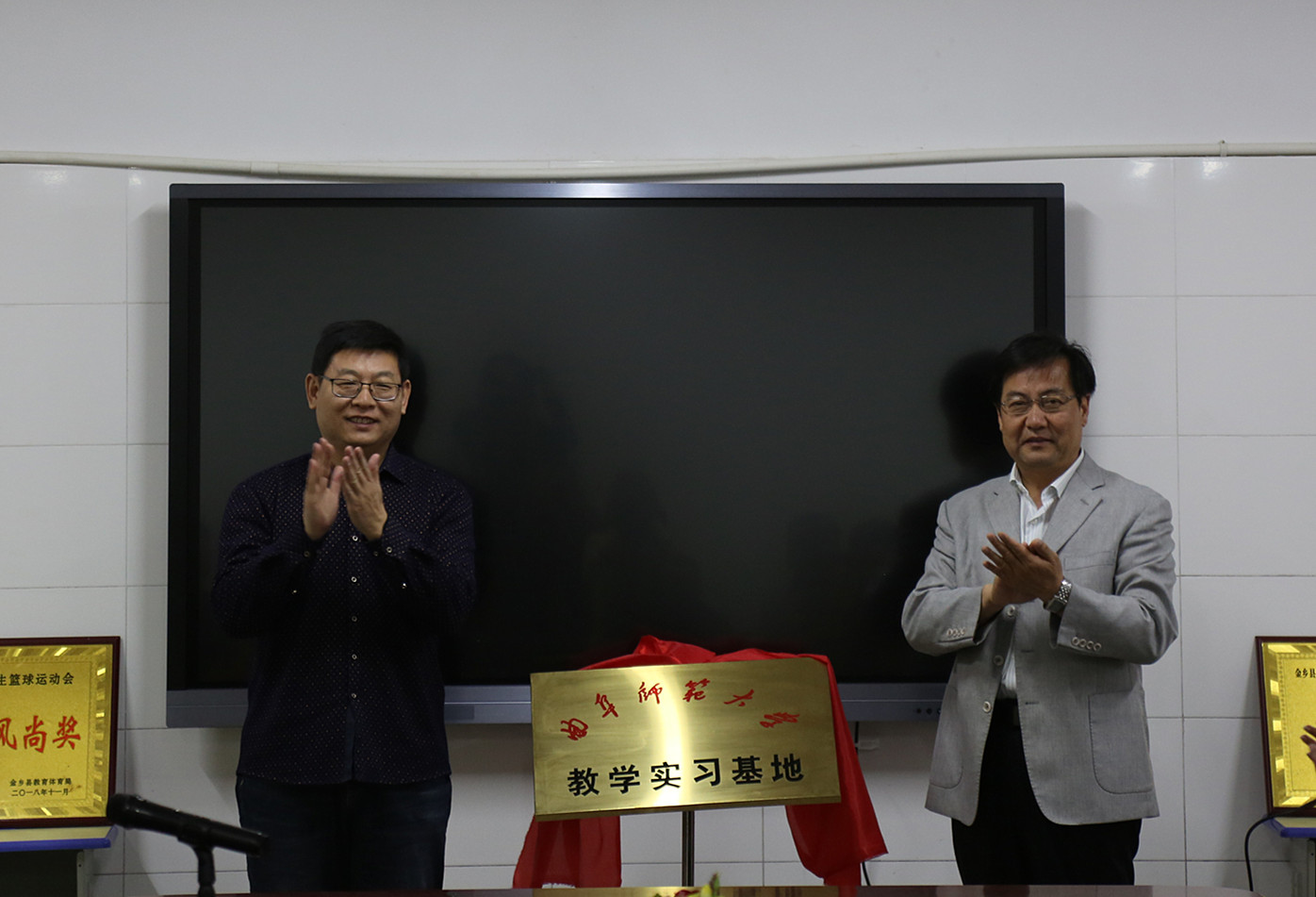 在金乡县,文学院党委副书记王作茂、数学科学学院党委副书记刘建新与金乡县教体局局长李英渠、金乡县实验中学校长周明坤等共同出席了“大发平台教学实习基地”挂牌仪式。仪式上,刘建新代表学校致辞,王作茂与周明坤共同签署了实习协议,并为”教育实习基地“揭牌。