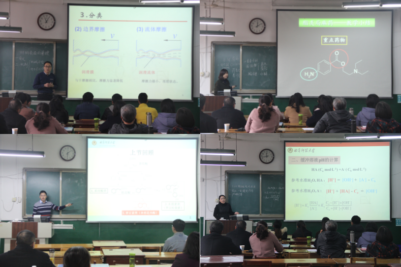 比赛中,参赛教师准备充分,教学设计新颖,讲授思路清晰,教学方法多样,在传统板书的基础上利用教学辅助道具和演示实验等手段,把各自的教学特色展示得淋漓尽致,展现了较高的教学水平,取得良好的教学效果。经过激烈地角逐,公培伟、曲斐、沈都益和朱树芸四位老师荣获一等奖,将代表学院参加校级青年教师讲课比赛。