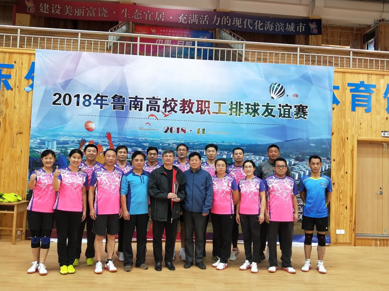 我校教职工排球队在第一天的小组赛中,队员们轮番上阵,互相鼓励,团结拼搏。在实力不占优、先输一局的情况下,依靠团队的力量,先后战胜了济宁职业技术学院、临沂大学两支强队,勇夺小组第一;并在第二天的淘汰赛中获得一等奖,圆满地完成了比赛任务。