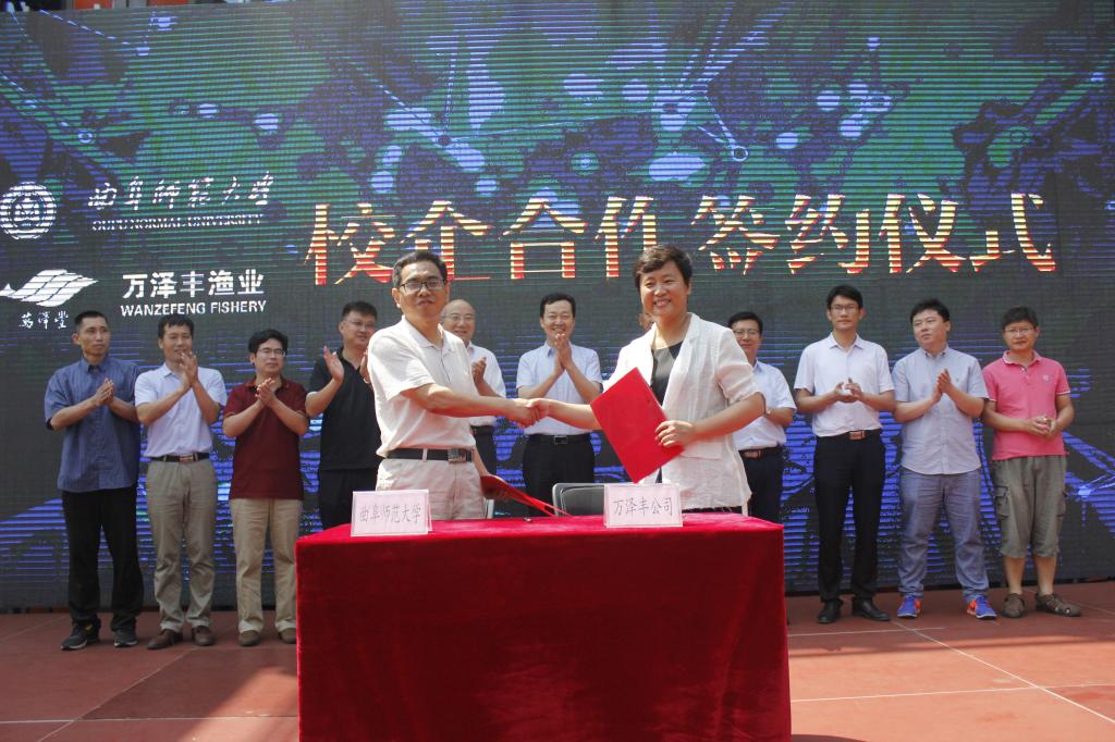 6月24日,我校经济学院与日照市万泽丰渔业有限公司、山东国医坛国际养生城有限公司教学实习基地签约及授牌仪式顺利举行,经济学院党委书记王民、副院长李传健,山海天旅游度假区党工委委员、纪工委书记许洋以及学院师生代表参加了活动。