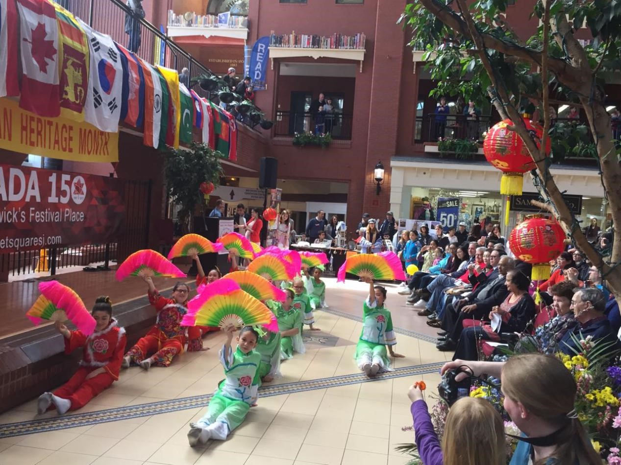 五月是加拿大“亚洲文化遗产月”,在5月7日圣约翰市举行的“亚洲文化遗产月”开幕式上,孔子学院精心布置了中国文化展台,给每一个前来体验的观众讲解并示范,在汉语教师张晓宇和志愿者李楠楠的组织安排下,给大家献上了一曲蜚声国内外的民乐演奏“二泉映月”和灵动美丽的扇子之舞“春晓”,与各位观众分享中国文化。