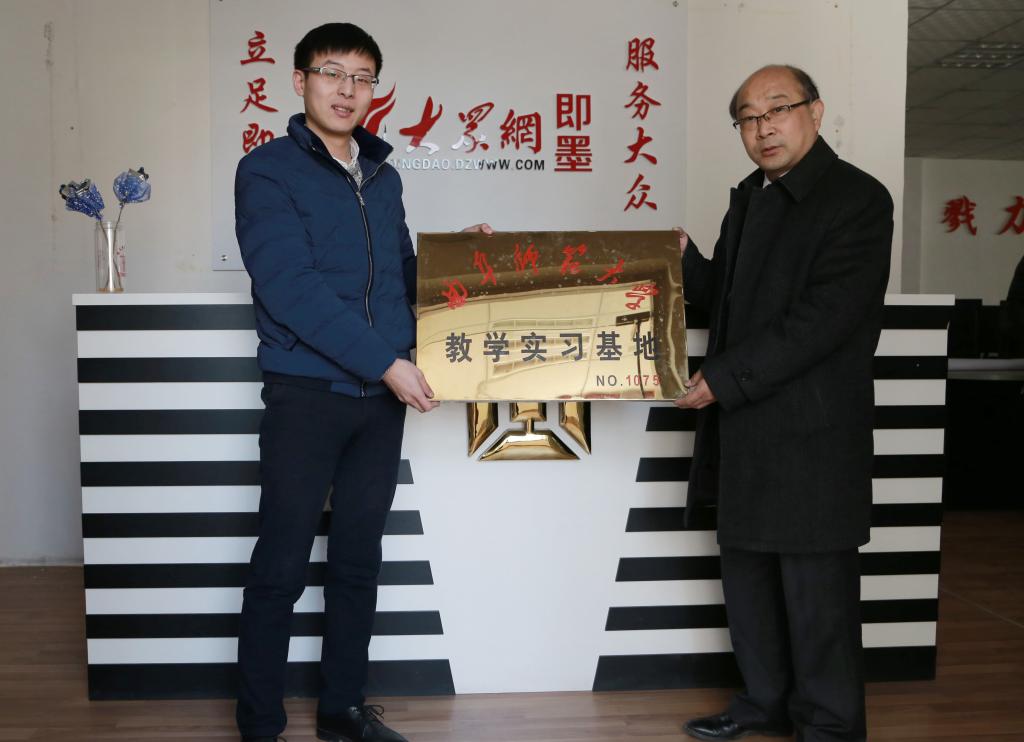 1月23日上午,“大发平台教学实习基地”授牌仪式在大众网即墨频道举行。传媒学院党委副书记肖龙航、团委书记刘蓉,以及传媒学院部分学生参加了授牌仪式。