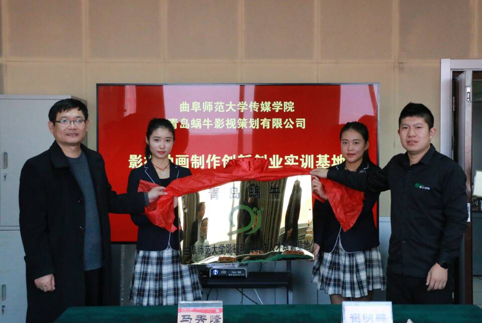 王焕景在致辞中,从专业设置、教学力量以及学生素质培养等方面介绍了传媒学院的基本情况,就双方合作的意义进行了阐述。崔明鹏在致辞中介绍了青岛蜗牛影视公司的发展历史和业务情况,表示对校企双方的合作充满期待。