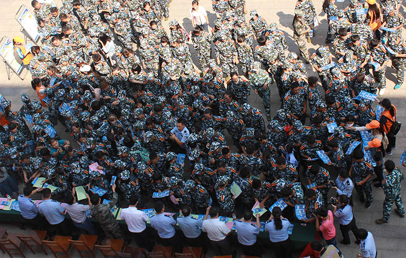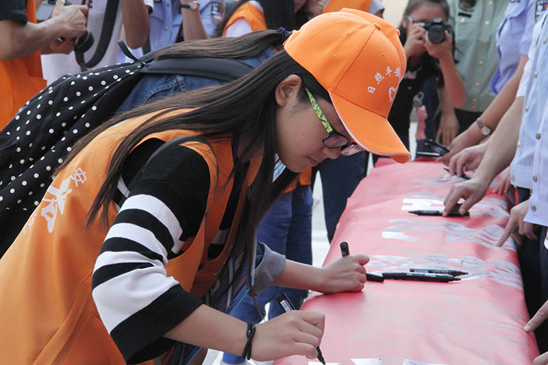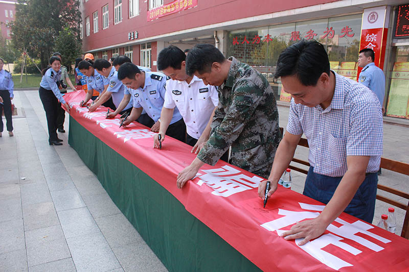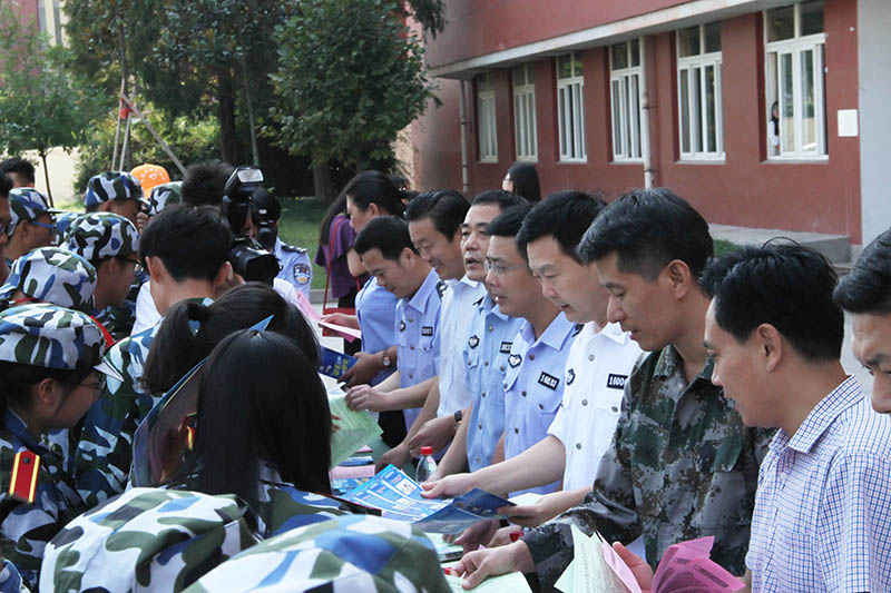 活动伊始,派出所工作人员与志愿者一起向学生们发放“网络电信诈骗主要类型及防范措施”宣传彩页。列举了“网上购物退款诈骗”、“以网上兼职刷信用为名进行诈骗”、“中奖短信电话诈骗”等十二大网络电信诈骗类型,并逐条进行具有针对性的防范措施提示。发放过程中,网安大队和派出所工作人员向学生们进一步讲解网络诈骗的相关知识,并不断提醒学生们,特别是刚入校的新同学务必增强防范意识,不轻信陌生号码的信息,不贪小便宜;一旦发现被诈骗,一定要第一时间拨打110报警并保存好相关证据,如实反映案件情况,切勿顾及颜面对实情有所隐瞒。接下来,各位领导在印有“隐私加把锁,骗徒远离我”的横幅上签名,并与学生们合影留念。之后新生和志愿者们也踊跃上前签上自己的名字。