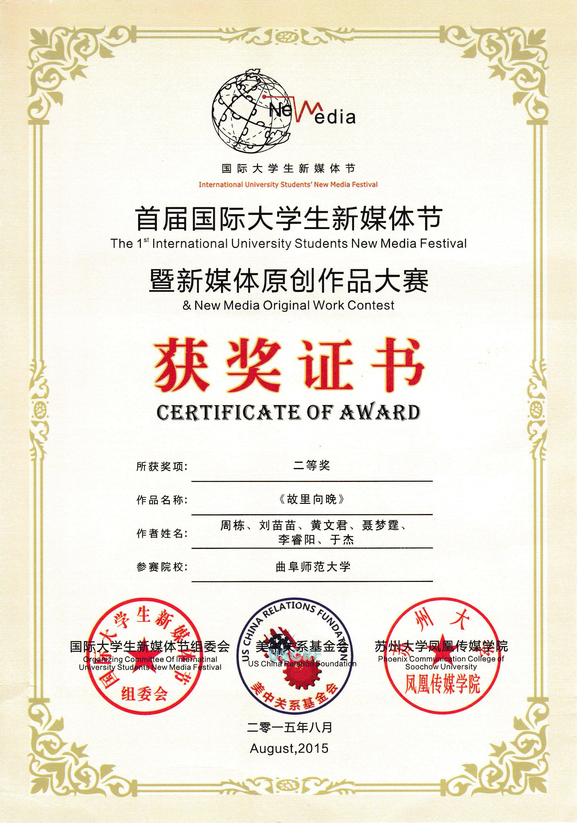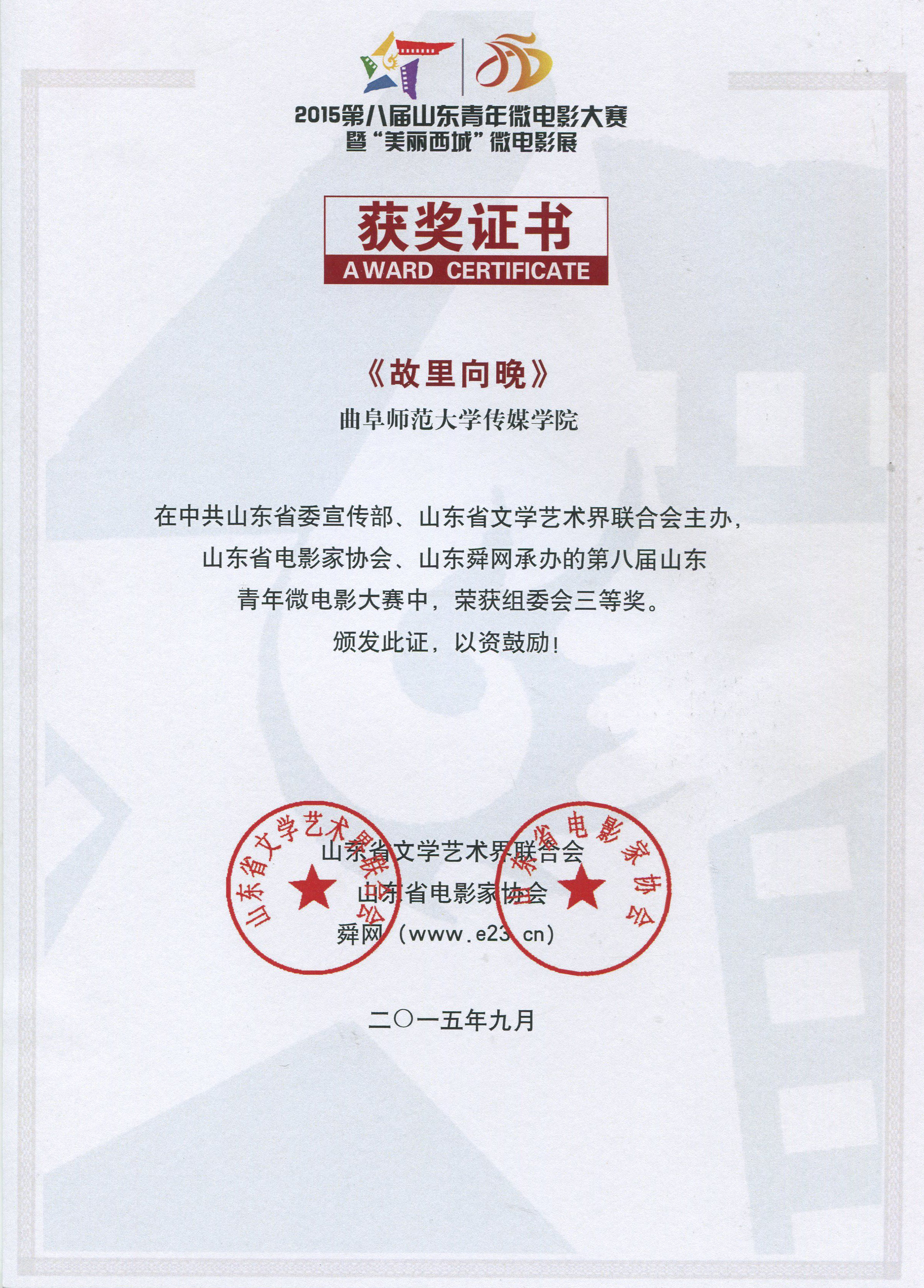 近日,在刚刚落下帷幕的海峡两岸大学生微电影大赛中,我校传媒学院学生作品《故里向晚》凭借动人的故事情节,再获海峡两岸大学生微电影大赛公益微电影奖。此前,该作品已荣获首届国际大学生新媒体节暨新媒体原创作品大赛二等奖、第八届山东青年微电影大赛三等奖、中国平遥微电影节最佳大学生作品奖。