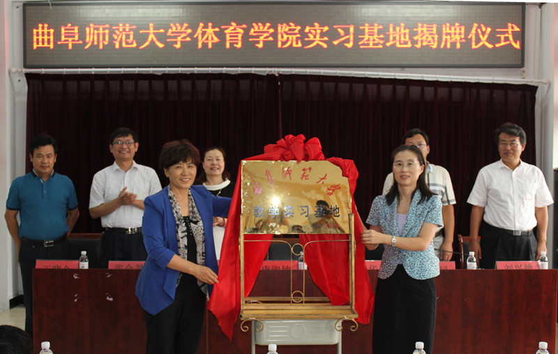 大发平台体育科学学院胶州实习基地挂牌仪式于9月18日在胶州三中和三里河小学举行。我校副校长康淑敏、胶州市副市长姜青华出席揭牌仪式并为基地揭牌,我校教务处、体育科学学院、胶州体教局和胶州三中以及三里河小学负责人参加仪式。