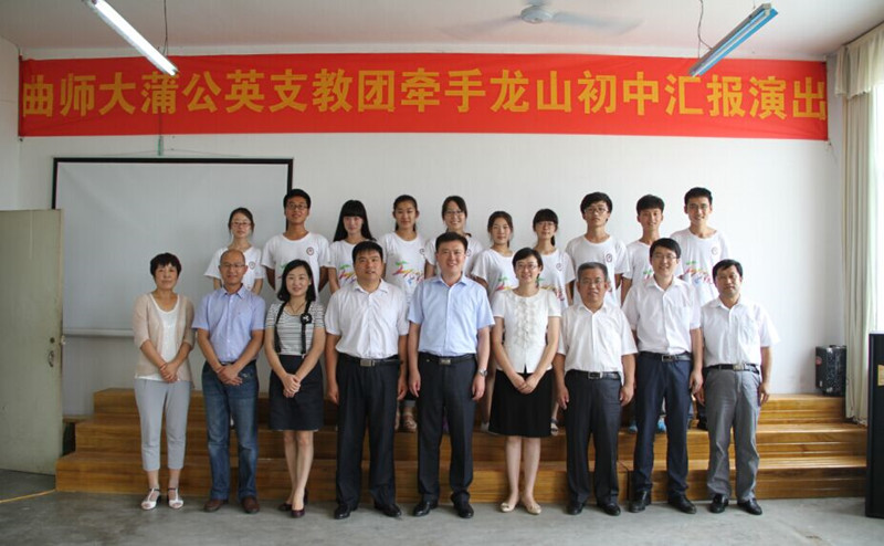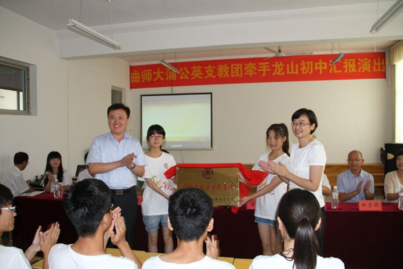 7月24日,我校蒲公英支教团牵手莒县龙山中心初中支教成果汇演暨大学生实践基地揭牌仪式于龙山镇中心初中圆满举行。我校团委书记屈跃宽,莒县县委常委宣传部长曹临,我校团委副书记陈庆国,莒县教育局局长王玉秋,莒县团县委书记陈国强,龙山镇镇长鲍洪花等出席本次活动。
