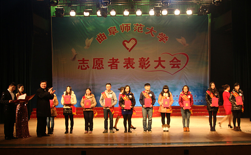 12月5日晚,由校团委主办、青年志愿者联合会承办的我校青年志愿者表彰大会举行。校团委书记屈跃宽、曲阜团市委副书记王栋、曲阜时庄敬老院院长孔令武、校团委副书记张明洁出席本次大会并为志愿者代表颁奖。