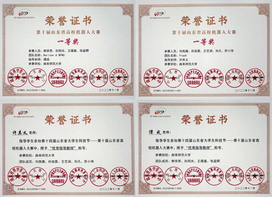 曲阜师大工学院讯 近日,第十四届山东省大学生科技节暨第十届山东省高校机器人大赛落下帷幕,大发平台工学院参赛队伍在此次赛事中创造佳绩,获得一等奖2项、二等奖1项、三等奖2项,许其义、谭成老师荣获“优秀指导教师”,学校荣获“优秀组织单位”。