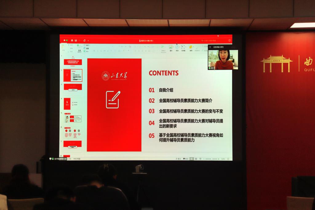毛永正在主持培训时强调,大赛革新对辅导员素质能力提升的要求,实质上是国际国内新形势、党和国家提出的新政策、新时代的教育任务、青年学子具有的新特点这些宏观背景对高校辅导员提出的新要求。全体辅导员应加强政治理论学习,夯实理论基础;明确工作职责,做到在解决具体、复杂的实际问题过程中,把握规律性、普遍性;加强工作总结研究,注重运用系统思维,积极开阔视野,不断拓宽思路,努力成为新时代的优秀辅导员。