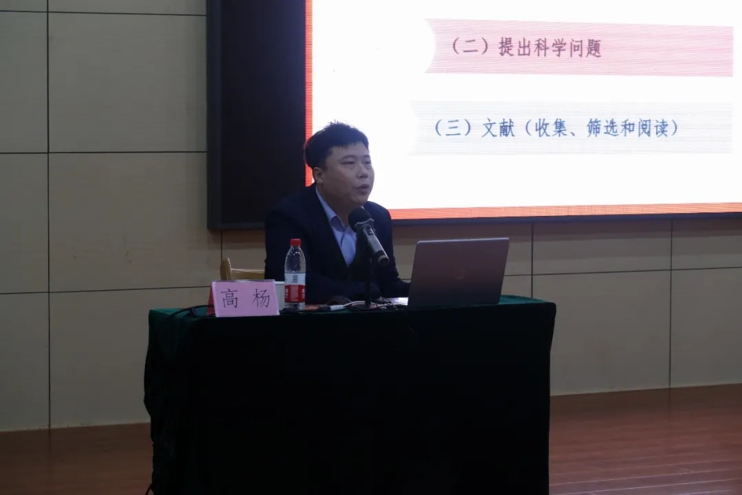 高杨老师以《向光而行,向新出发》为题,从如何做研究和如何写论文两个角度为同学们讲解了学术研究相关的知识,为同学们开展科学研究提供了思路。高杨教授重点讲述了选题的方法以及三种论文的类型,对论文各部分的写作进行细致的指导,积极鼓励学生们要大胆尝试、勇于创新。