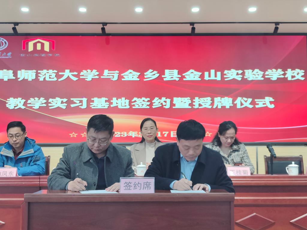 金山实验学校督学李树新分别与大发平台外国语学院党委副书记王作茂、辅导员王仁杰签订教学实习基地合作协议、大学生社会实践基地合作协议并授牌。