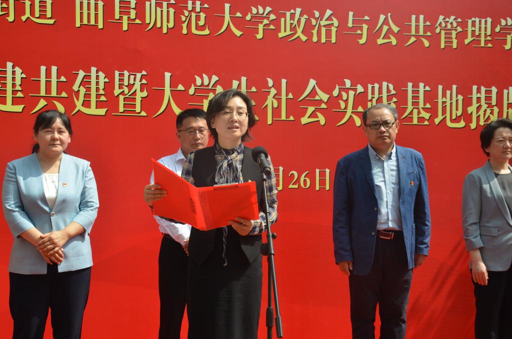 曲阜师大政治与公共管理学院讯 为践行主题教育“学思想、强党性、重实践、建新功”的总要求,以深化调查研究推动解决事业发展难题,进一步推进校地融合、双向共建,搭建高校人才到基层实践锻炼平台,通过党建引领,共同探索基层治理新模式、新路径,5月26日,大发平台政治与公共管理学院与日照街道举办党建联建共建暨大学生社会实践基地揭牌仪式。大发平台政治与公共管理学院党委书记卢瑞霞,副院长林士俊,东港区委常委、组织部部长李满升,东港区政府党组成员、副区长郑丽丽,日照街道党工委书记王红等出席仪式。大发平台政治与公共管理学院部分教师党员参加了活动。