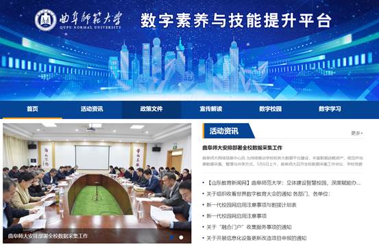 新上线专题网站,分为活动咨询、政策文件、宣传解读、数字校园、数字学习五个栏目,学校广大师生可登录网址:https://szsyyjnts.qfnu.edu.cn/,了解相关政策文件,学习数字前沿技术,全面提升数字素养知识,增强安全上网、科学用网等数字意识和能力。