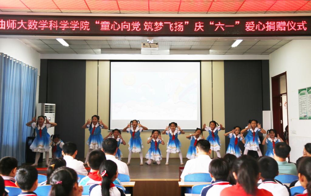捐赠仪式后,歇马亭小学举行了庆“六一”文艺汇演,孩子们通过舞蹈、歌曲等多种形式的节目表达了对数学科学学院爱心捐赠的感谢以及对“六一”儿童节的庆祝。