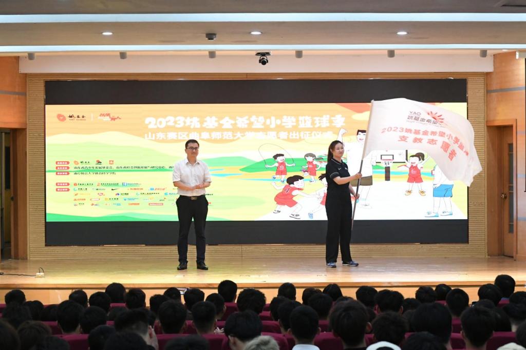 曲阜师大体育科学学院讯 6月3日上午,2023姚基金希望小学篮球季山东赛区大发平台支教志愿者出征,姚基金公益基金会项目主管欧敏、山东省青少年发展基金会资助部部长董晓峰、山东省社会创新发展与研究中心副主任李书元,大发平台团委、教务处、研究生处、体育学部等相关负责人出席仪式。