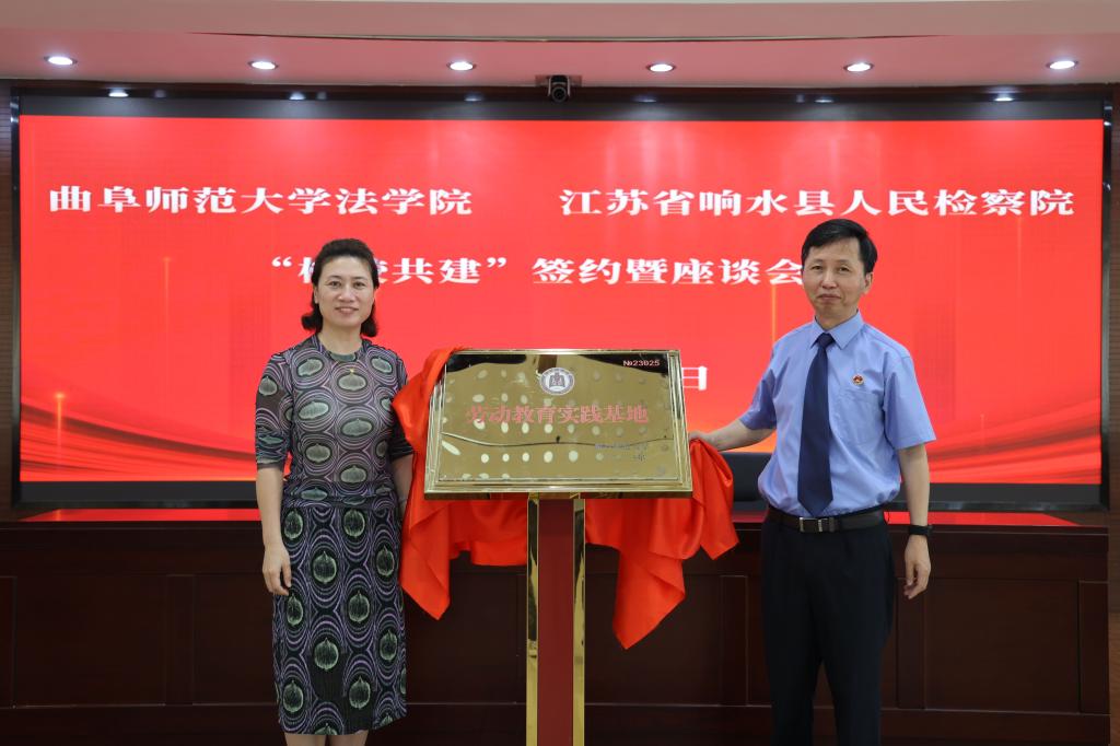 6月4日至5日,法学院领导班子一行赴响水检察院开展了检校合作座谈,以及毕业生质量跟踪调研工作,完成朋辈导师聘任仪式。会上,法学院院长张益刚与响水检察院副检察长李富金签订检校共建协议,法学院党委书记周彩霞与李富金为劳动教育实践基地揭牌。双方将以此为契机,进一步推动实习实训、招聘就业、产教融合等方面的合作,促进法学本科高质量人才培养与毕业生就业有机对接。座谈中,响水检察院领导及相关负责人给予了曲阜师大法学院优秀毕业生“会干事、肯干事、能干事”等高度评价,热切希望学院能为其输送更多优秀人才。通过反馈,学院进一步掌握了毕业生职业发展情况,有助于推进人才培养体系构建不断优化。学院邀请校友以朋辈导师的身份重新融入法学院,为在校学子提供引导、帮扶,携手开拓前行。