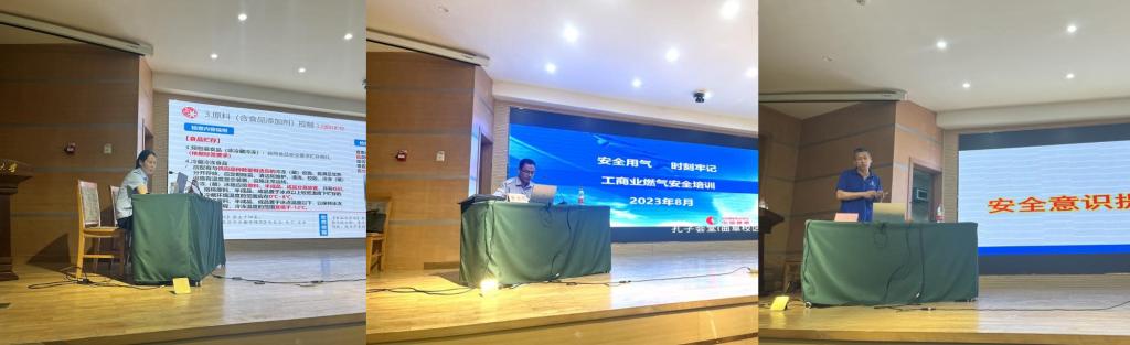 本次培训班分为食品安全、燃气安全和消防安全三个专题,分别邀请到曲阜市市场监管局冯然然、曲阜市富华燃气有限公司董效腾、学校保卫处消防科刘淑朋为大家作专题讲解指导。