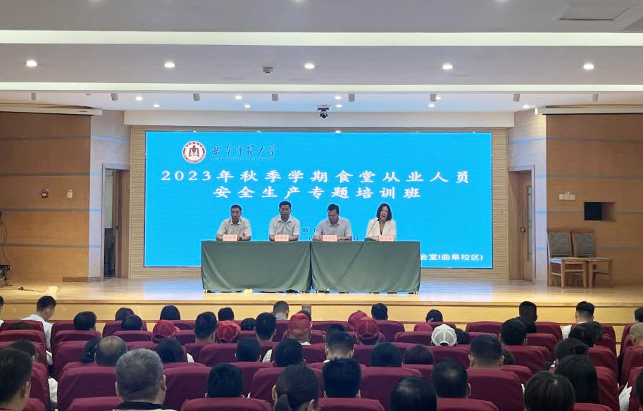 曲阜师大后勤管理处 为切实加强学校食堂食品安全生产,保护师生生命健康,维护校园和谐稳定。8月25日,后勤管理处组织开展了食堂安全生产集中培训,后勤管理处处长展利民,副处长祁世友、张石磊,生活服务中心负责人、餐厅管理及从业人员近300人参加了本次培训活动。