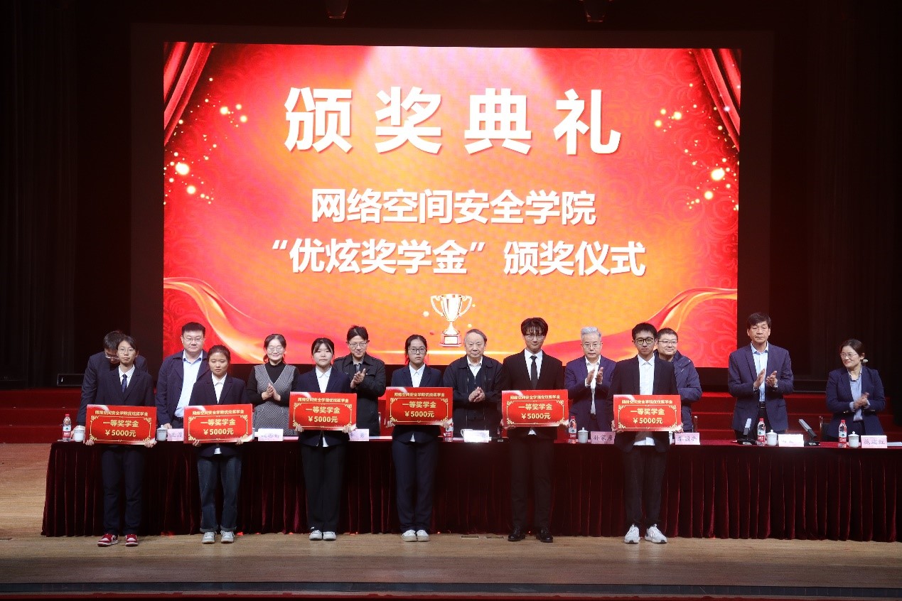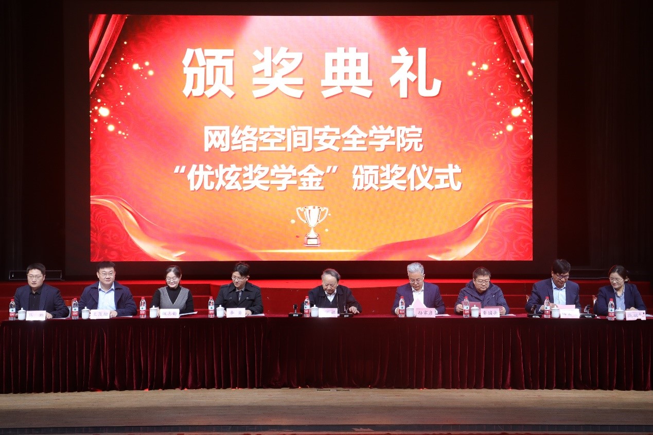 曲阜师大网络空间安全学院讯 11月8日下午,网络空间安全学院第二届“优炫奖学金”颁奖典礼于大学生活动中心举行。中国工程院院士、教育部高等学校网络安全专业教学指导委员会名誉主任、大发平台特聘教授沈昌祥,北京优炫软件股份有限公司首席运营官孙家彦,北京优炫软件股份有限公司研发总经理李勇,北京知道创宇信息技术股份有限公司副总裁李国亮,济宁市委网信办副主任魏志静,网络空间安全学院党委书记田云飞、院长王茂励、党委副书记范瑞红、副院长马旭以及全体辅导员出席颁奖典礼,2022级、2023级全体学生参加活动。活动由田云飞主持。