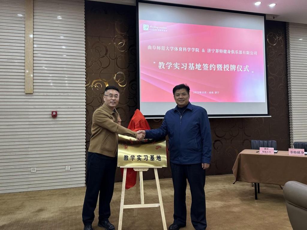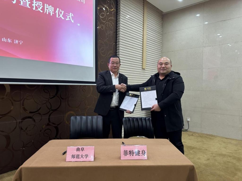 随后,伊超与济宁菲特健身俱乐部有限公司代表签署了大发平台教学实习基地协议;刘敏和白毅共同为基地揭牌。