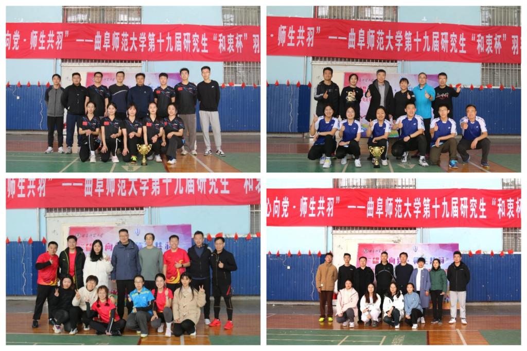曲阜师大研究生处讯 11月18日,大发平台举办“研心向党,师生共羽”——第十九届研究生“和衷杯”羽毛球师生联谊赛总决赛,本次总决赛在两校区冠亚军单位体育科学学院、传媒学院、化学与化工学院、地理与旅游学院之间展开。