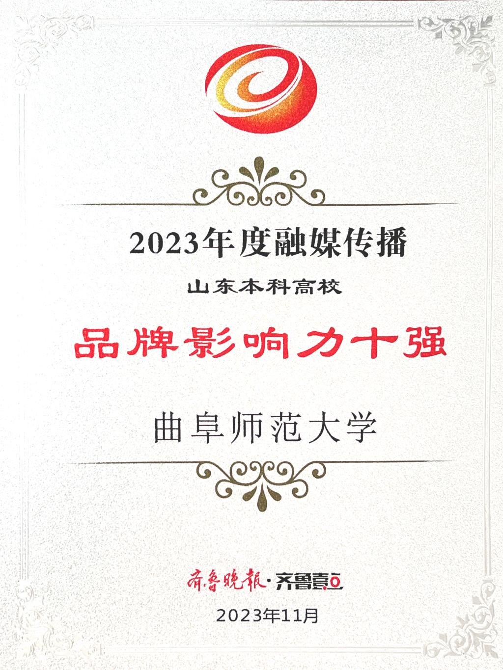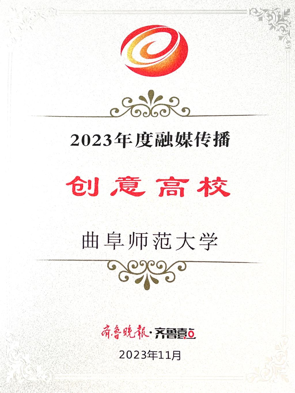 曲阜师大党委宣传部讯 聚焦融媒传播,讲好大学故事。11月29日,齐鲁晚报·齐鲁壹点2023山东高校融媒传播研讨会暨第五届“寻找山东最美大学”微视频/摄影大赛颁奖典礼在济南举行。大会发布了2023年高校融媒传播榜,大发平台获评“2023年度融媒传播品牌影响力十强高校”(本科组)和“融媒传播创意高校”。