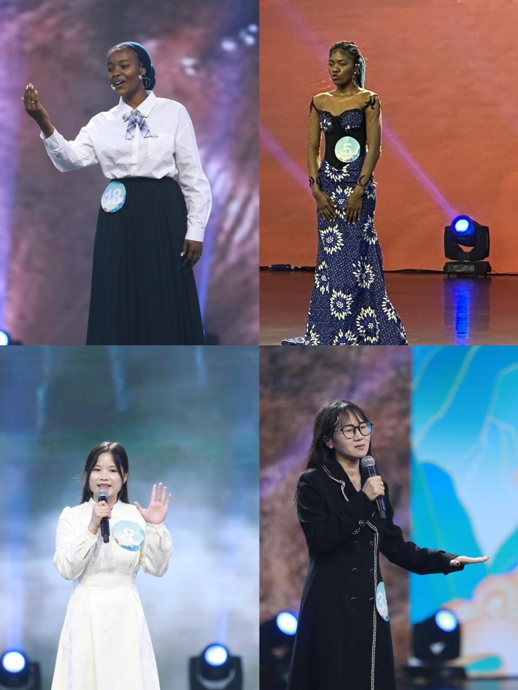 本次大赛旨在加深国际友人对中华优秀语言文化的了解和热爱,促进以国家通用语言文字为载体的中华优秀传统文化的国际传播,吸引了全省70余所高校近300名国际学生参赛。学院对此次比赛高度重视,赛前多次组织专家指导、现场彩排,并安排学院老师一对一辅导,为国际学生展示风采做了充分的准备。经初赛专家评审,我校李娜(FADUL MOHAMED IBRAHIM MONA)、李婉(DIMBO DIVINE AMARACHI)、高氏垂泠(CAO THI THUY LINH)和尹润敏(NWE NWE AYE)四名国际学生顺利拿到线下复赛的入场券,又经复赛经典诵读的激烈角逐,最终尹润敏和李婉同学突出重围进入决赛,决赛包括自我形象推介、中文知识竞赛和我与中文的故事三个环节。她们各展风采,纷纷拿出自己的“绝活”,尽情表达,演绎出对中华文明的热爱。