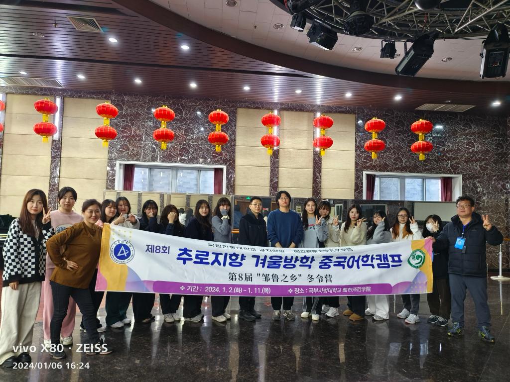 曲阜师大国际交流合作处讯 1月2日至11日,韩国国立安东大学孔子学院学生冬令营在曲阜师大成功举办。安东大学孔子学院15名学生在曲阜师大进行了为期10天的语言研修和文化体验活动。