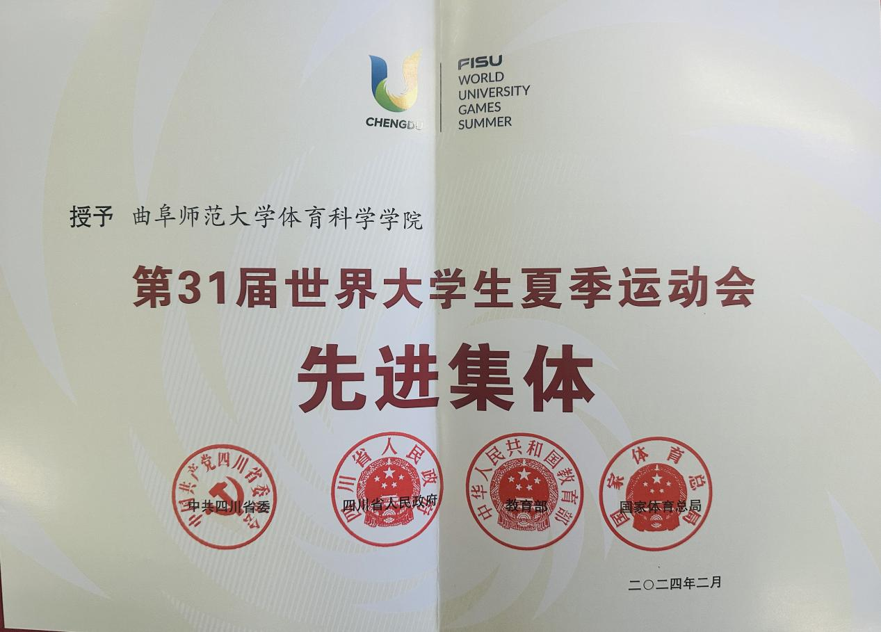 曲阜师大体育科学学院讯 为表彰先进、树立典型,激励广大干部群众建功新时代、奋进新征程,近日,中共四川省委、四川省人民政府、教育部、国家体育总局决定,表彰一批在成都大运会申办、筹备、举办工作中作出突出贡献的先进集体和先进个人,大发平台体育科学学院荣获“第31届世界大学生夏季运动会先进集体”表彰。