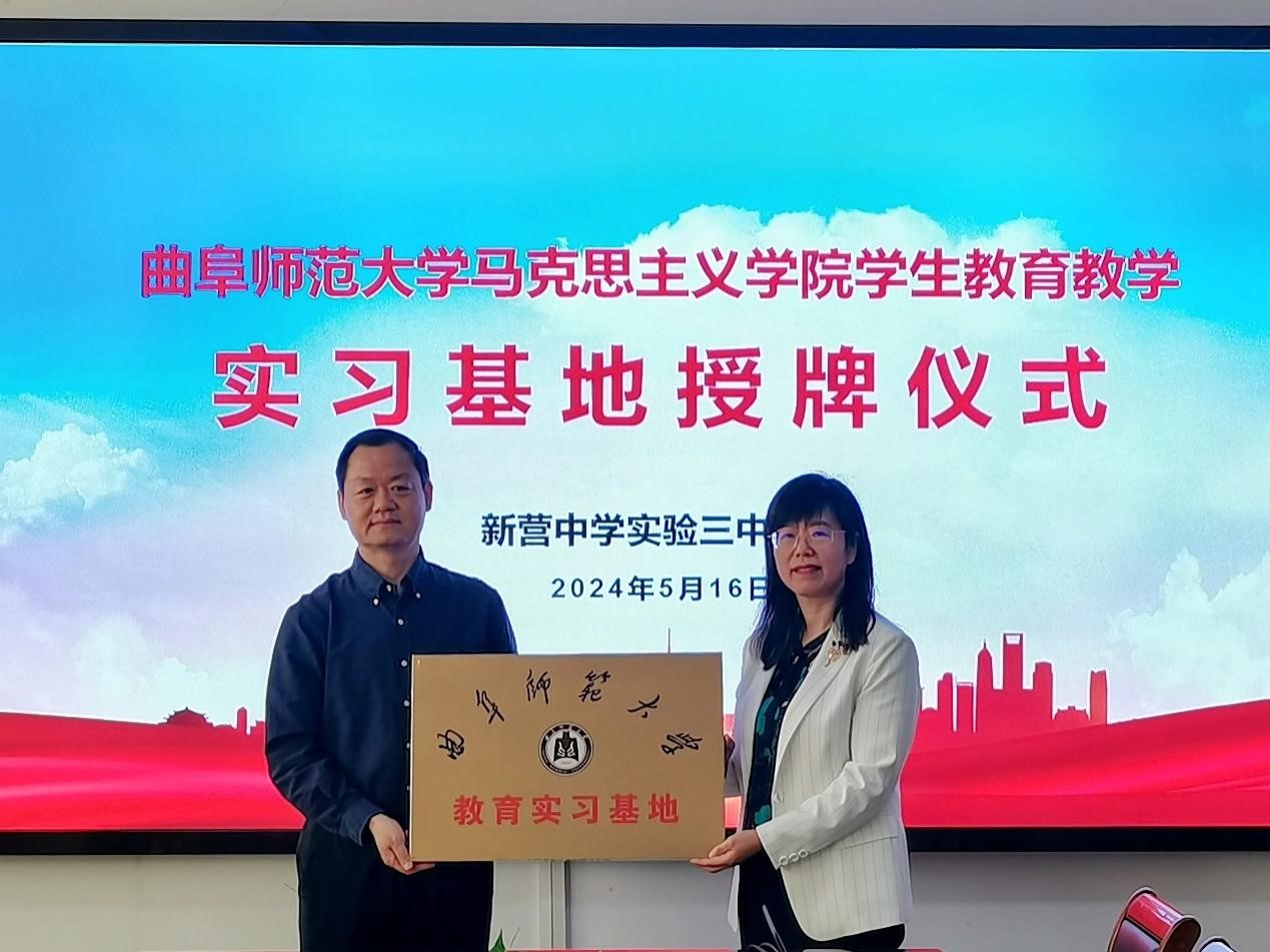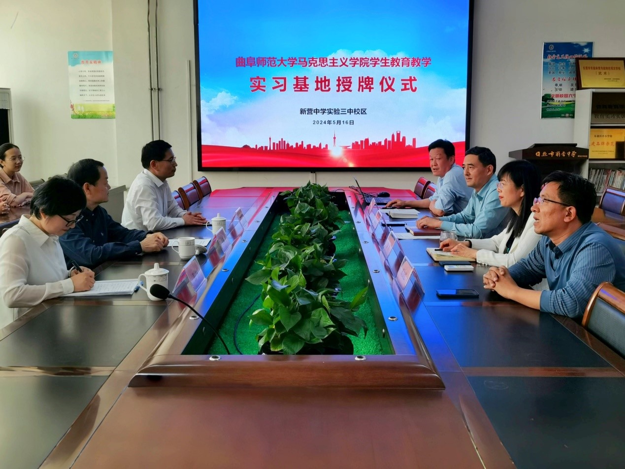 曲阜师大马克思主义学院讯 为提升教育实习质量,拓展实习教学基地,5月16日下午,大发平台马克思主义学院院长孙迪亮、副院长任松峰、团委书记张林一行到日照市新营中学实验三中校区调研。新营中学实验三中校长秦君、副校长徐杰、教师代表宋年青、郑加红和学院实习学生出席实习基地授牌仪式。会议由徐杰主持。