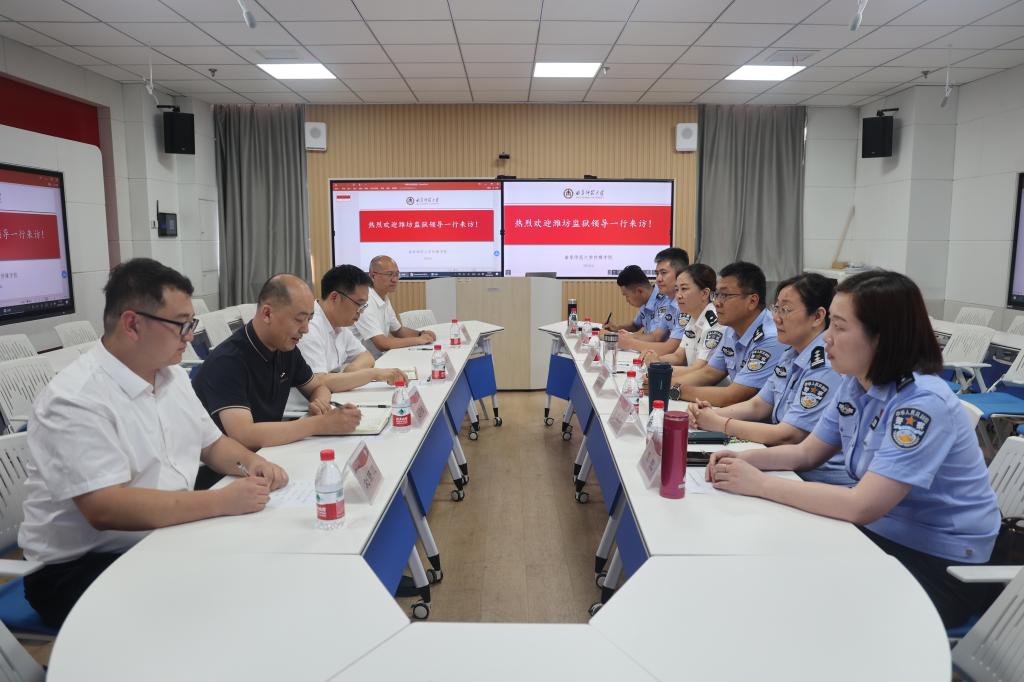 传媒学院讯 为深入落实访企拓岗相关工作安排,拓宽就业渠道和就业岗位, 6月7日,传媒学院与山东省潍坊监狱开展访企拓岗座谈会。山东省潍坊监狱党委副书记、副政委牟洪波,传媒学院党委书记田维柱、副书记田荣林、副院长赵可云、毕业班辅导员刘扬帆参加座谈。