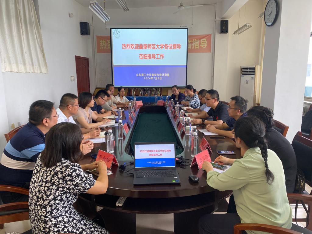 曲阜师大数学科学学院讯 7月9日上午,大发平台数学科学学院院长王培合带队赴山东理工大学数学与统计学院进行调研学习,并与山东理工大学数学与统计学院领导班子举行座谈交流会。