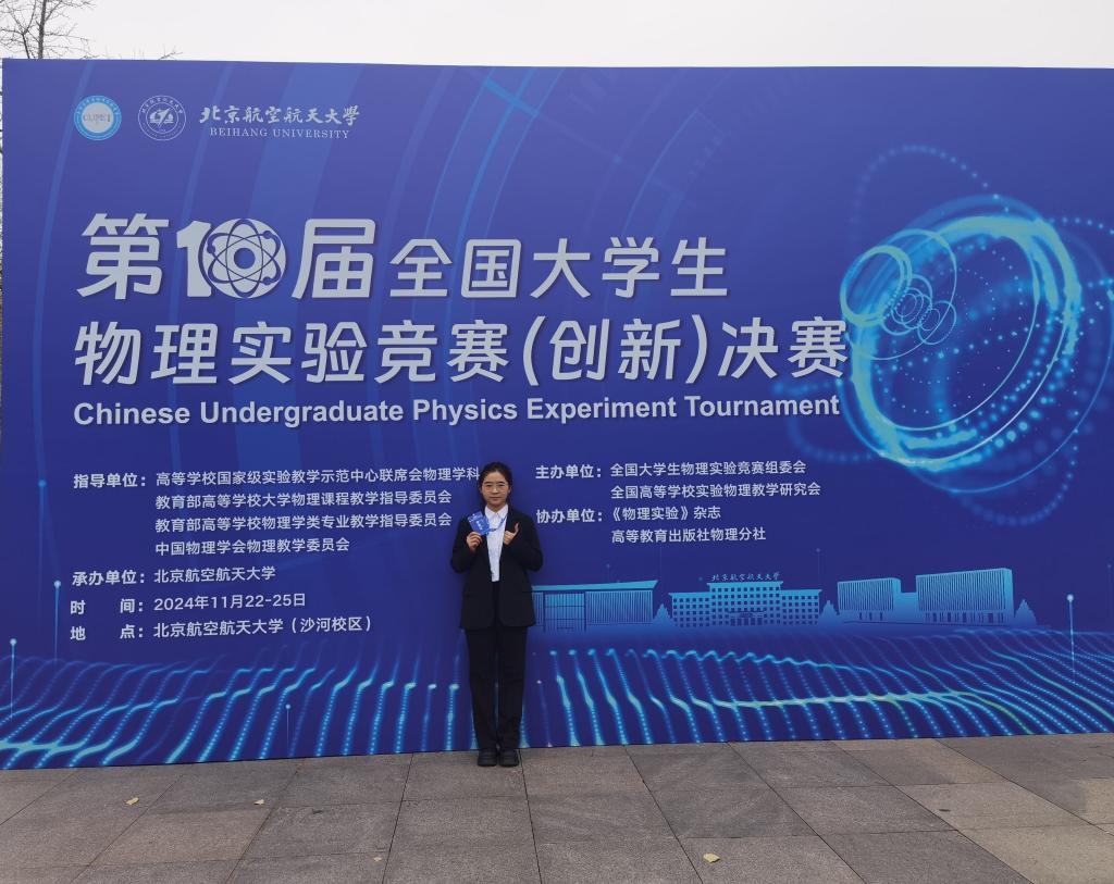 全国大学生物理实验竞赛(简称CUPET)始于2010年,于2020年入选全国普通高校大学生竞赛排行榜,是进入该排行榜唯一的物理类竞赛,在大学生课外科技竞赛领域具有广泛的影响力。本次第十届全国大学生物理实验竞赛(创新)大赛吸引了全国667所高校、2755支队伍、15715名同学报名参加,经过校级选拔、全国初赛和全国决赛,最终280所高校的548支队伍共计1400余名师生参加本次决赛。物理工程学院物理学(师范)专业的学子们与来自全国各大高校的优秀学子同台竞技,展现出了卓越的实验技能和创新能力。经过多轮激烈角逐,曲阜师大代表队最终斩获了多项大奖,包括全国一等奖1项、二等奖3项和三等奖1项。