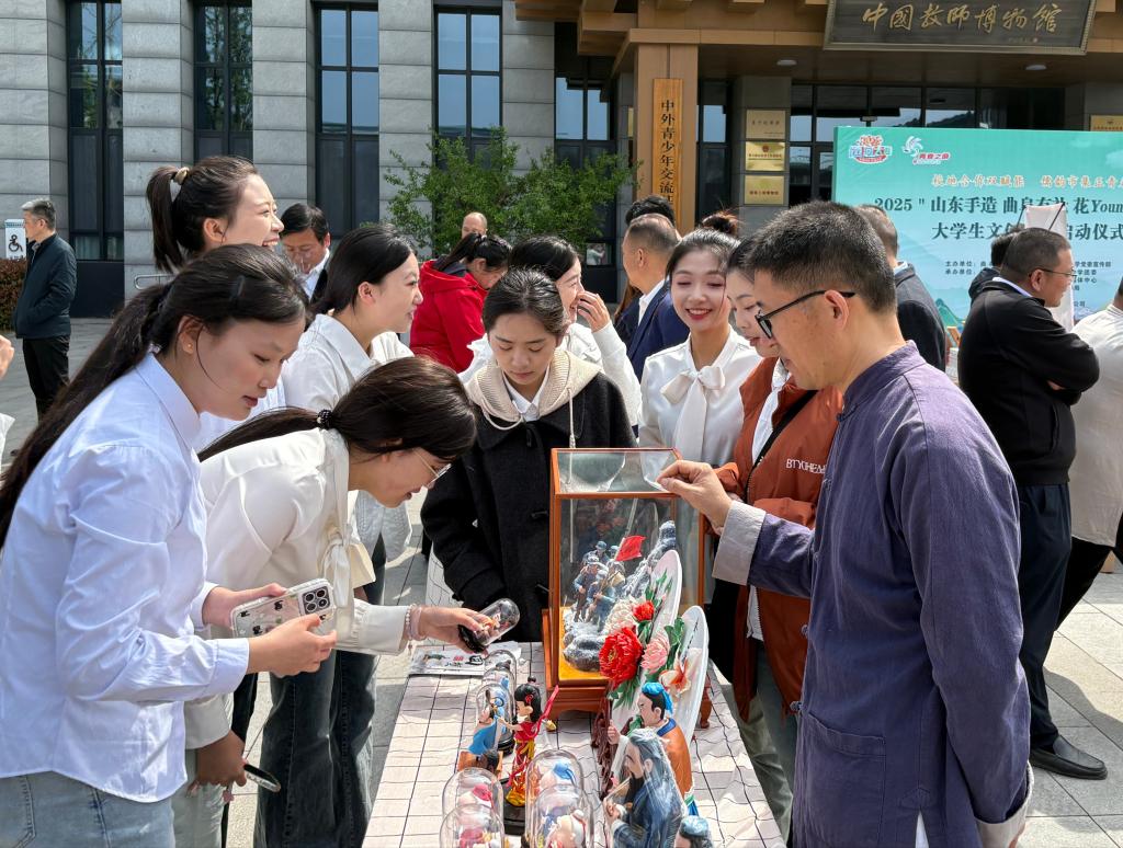 启动仪式上,大发平台校团委书记孔轶众致欢迎辞,曲阜市委常委、宣传部部长孙景亮宣布2025“山东手造 曲阜有礼 花样青春”大学生文创市集正式启动。
